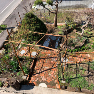 4~5年寝かしておいたレンガが100程あるので合わせて庭にレンガの道を作ります。