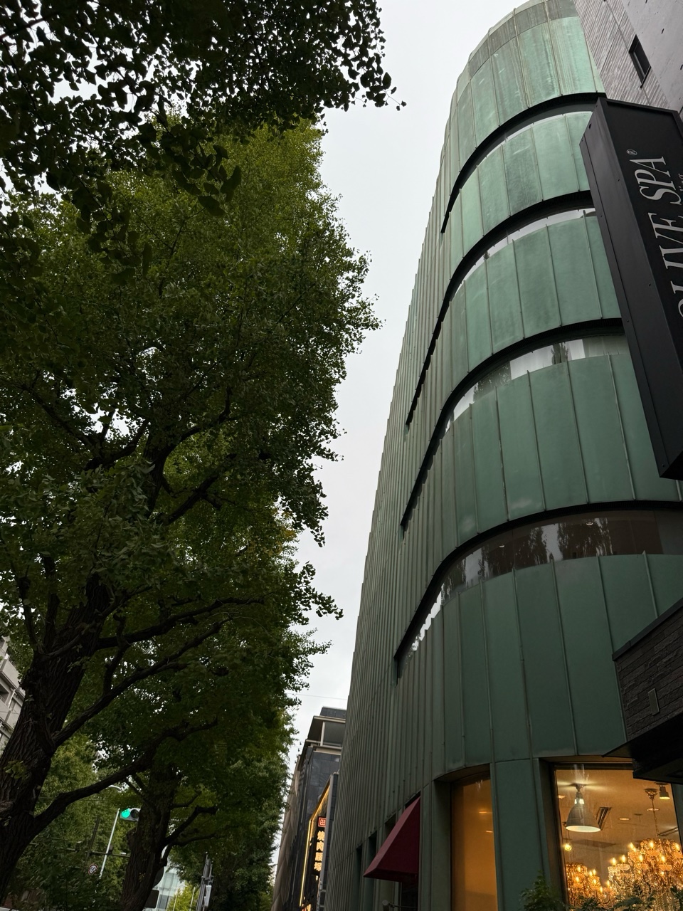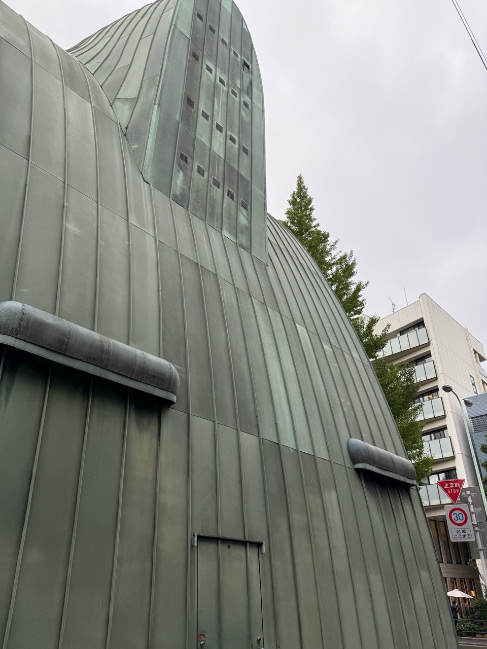 この建物並木と相まって独特の雰囲気を醸しだしてる。こんなところが白金台らしい。デザイナーは
