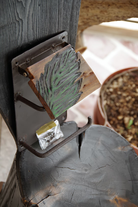 2階風の隠り処( かぜのこもりず)のトイレのペーパーホルダに彫刻刀で悪戯した。