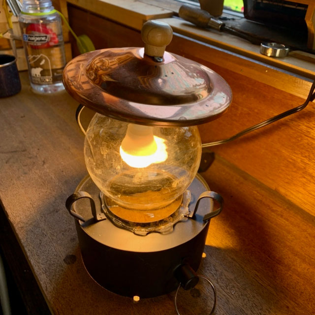 金魚鉢で作ったランタン、物置小屋の照明で使っています。