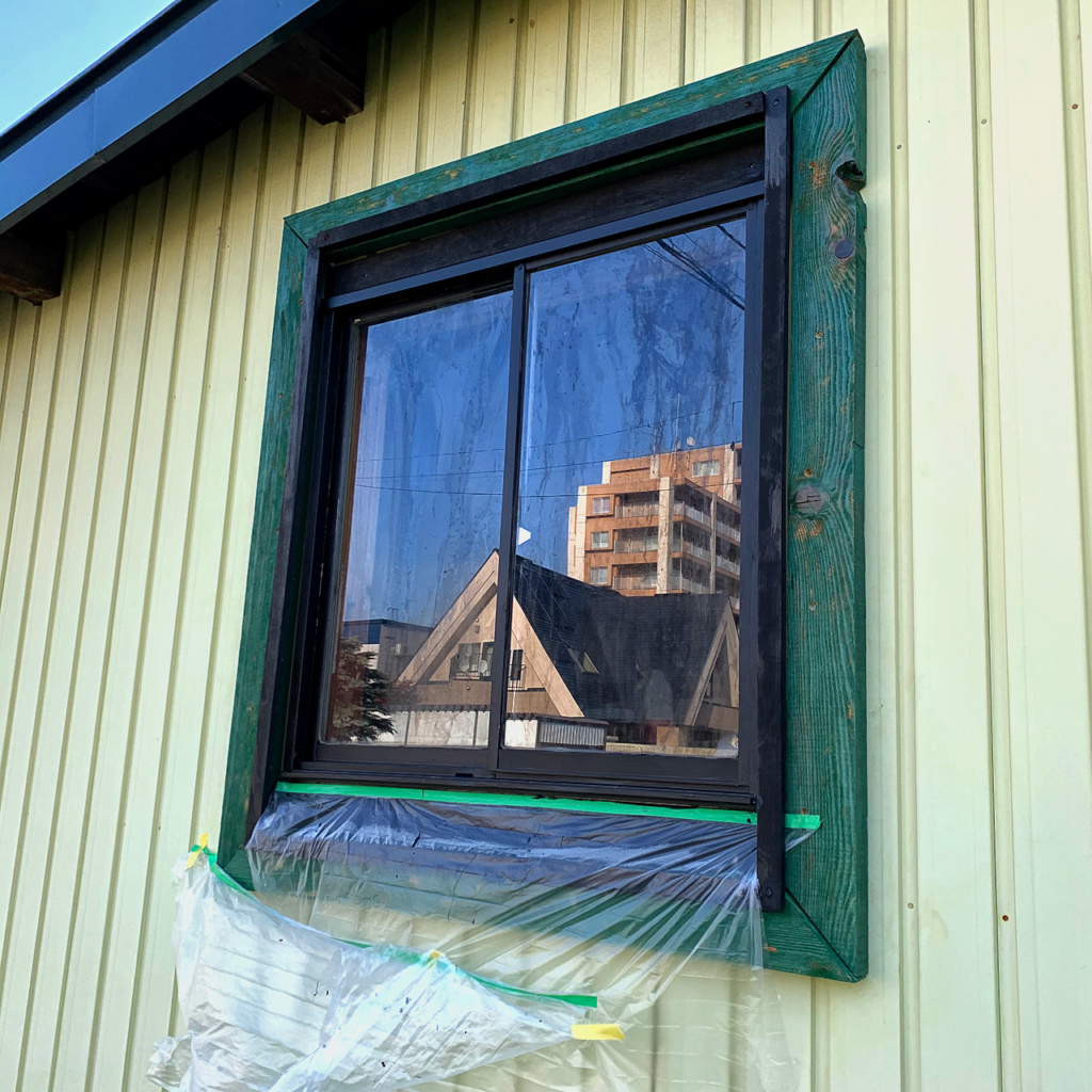 物置の窓に窓枠を作った。会った材料・・幅も違う材料で作ったので結構苦労した。