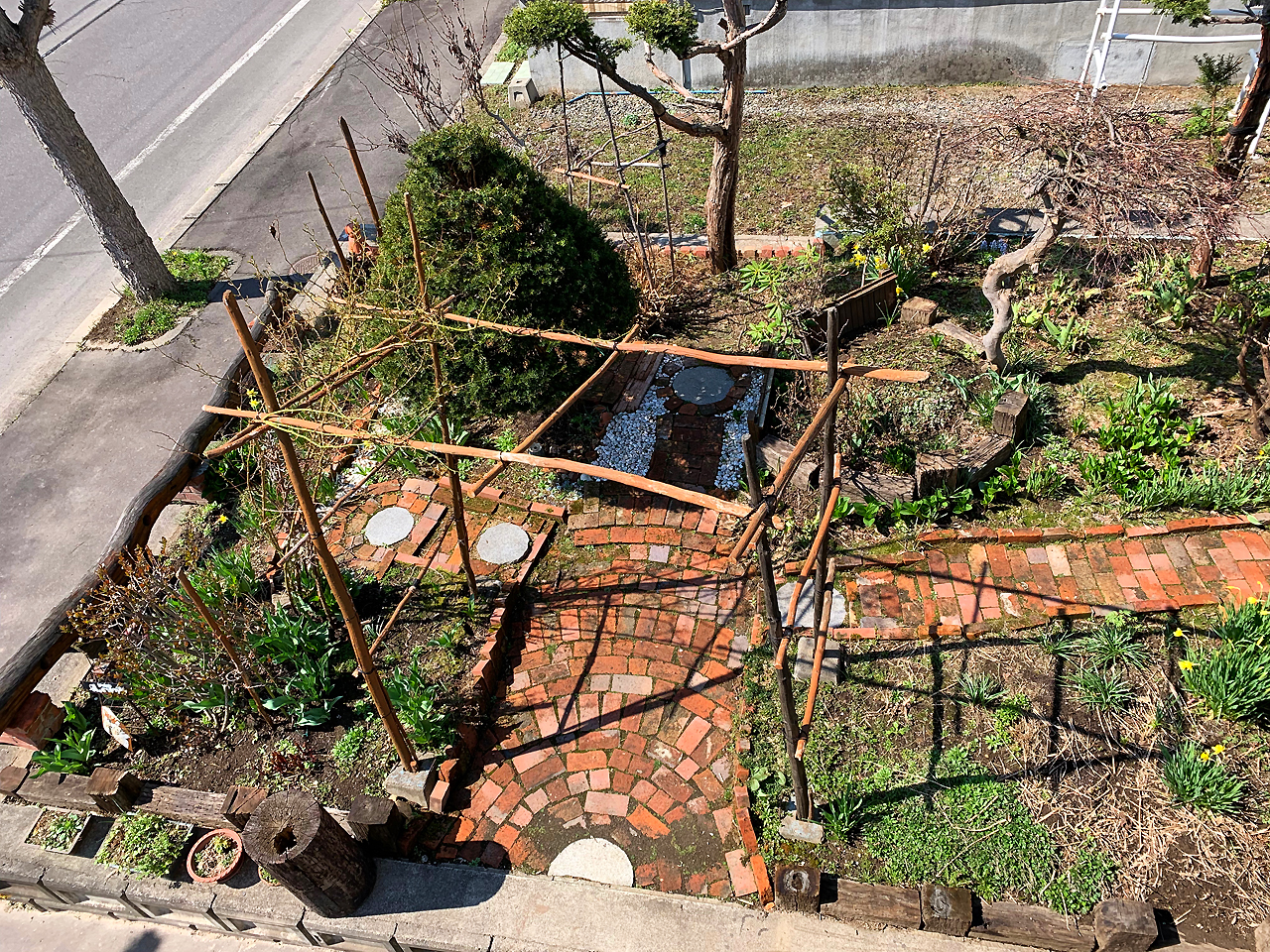 庭にレンガサークルとレンガ路を作った。これ結構大変でした。