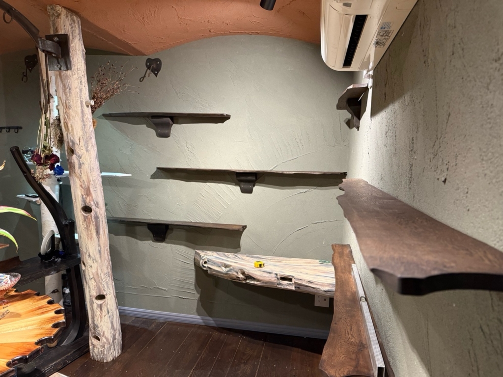 直線的な白い棚を取り付けてあったのですが、
