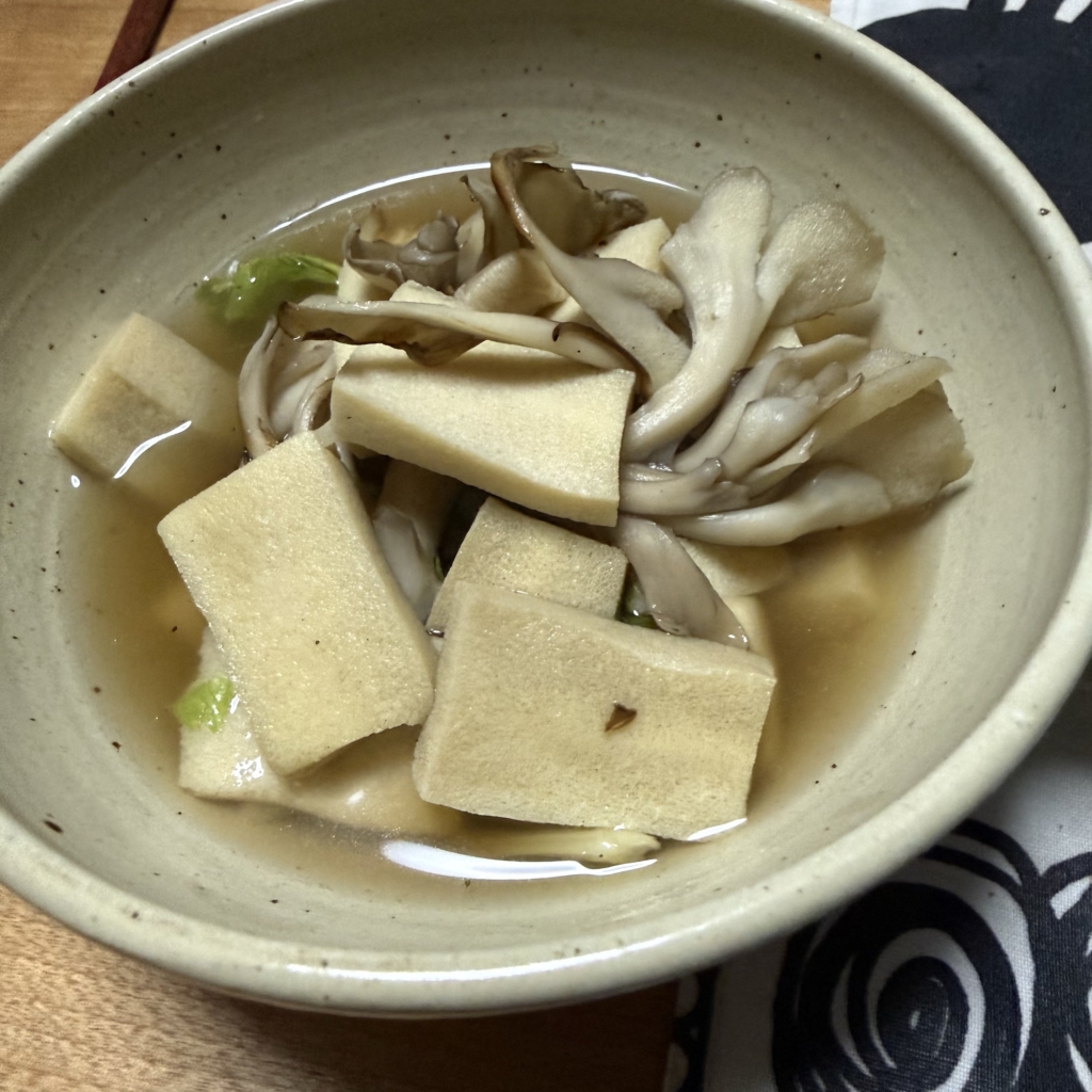 帰りウエスタンで食材を買って調理。えびフライとトンカツを揚げたよ。スープは舞茸のコンソメスープを作った。正月のしみ豆腐が残っていたのでそれも入れて作りました。